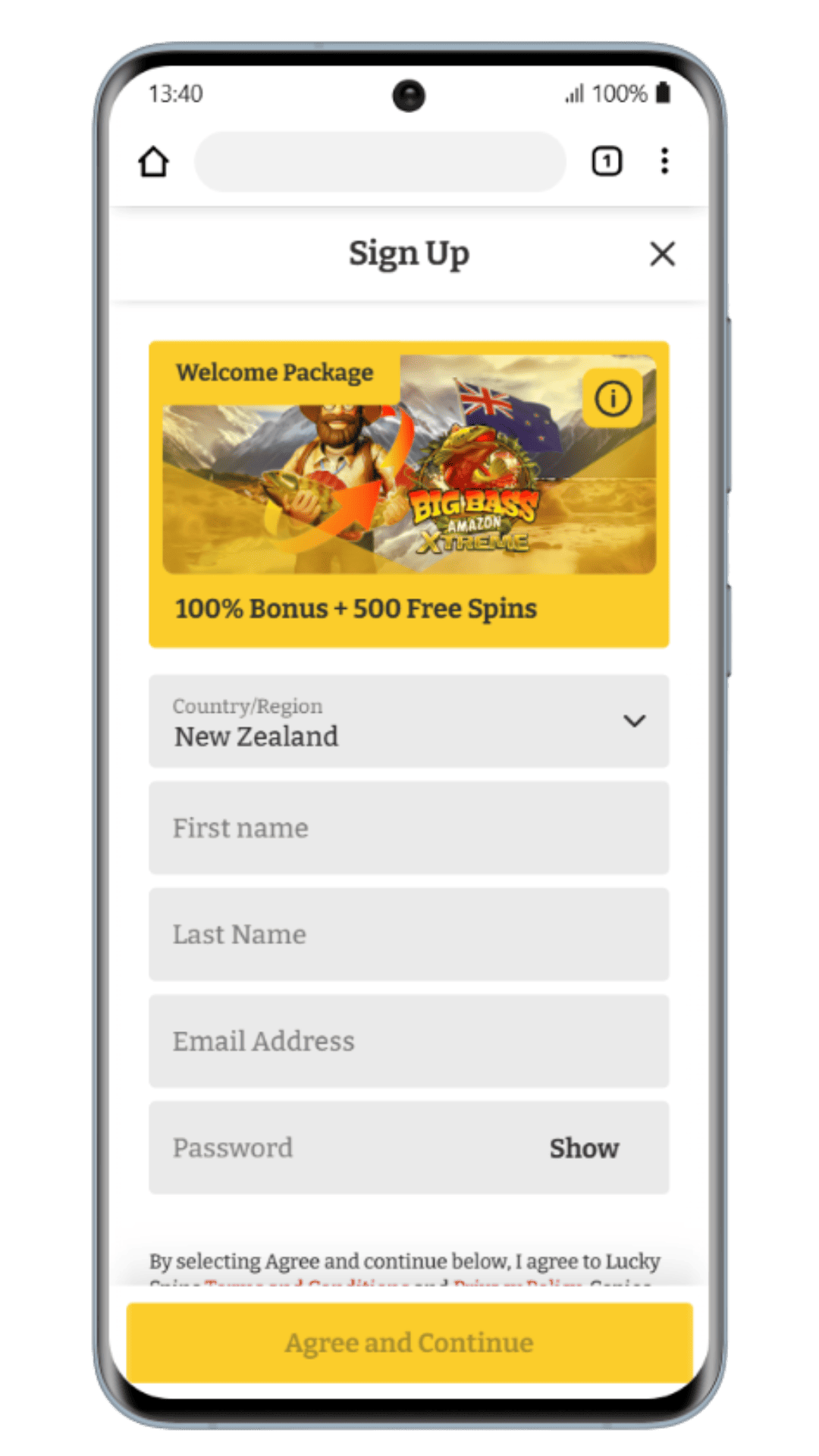 Forhåndsvisning av Lucky Spins casinoside
